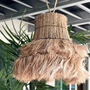 For a cozy bedroom setting, the pendant light provides a soft, diffused glow that creates a relaxing ambiance. It pairs well with other natural decor elements like wooden furniture, jute rugs, and indoor plants, enhancing the bohemian or rustic vibe of the space. Its design also complements more modern interiors, adding a touch of texture and warmth to sleek, minimalist setups.