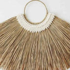 Made from seagrass and seashells, intricately sewn together over a wooden round ring.