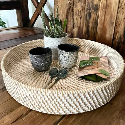 Elevate your serving style with our Whitewash Wicker Tray, a perfect blend of rustic charm and modern elegance. Handwoven from natural wicker and finished with a subtle whitewash, this tray offers a light and airy aesthetic that complements a wide range of interior styles. Ideal for serving drinks, breakfast in bed, or displaying decorative accents, its sturdy design and comfortable handles make it as practical as it is beautiful. The whitewash finish adds a fresh coastal feel, perfect for brightening up any space with a touch of casual sophistication.