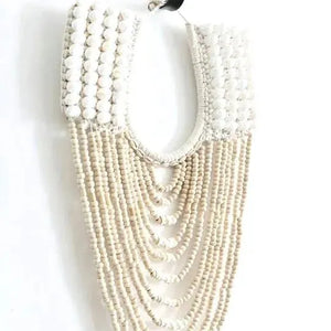 Made from seagrass, seashells and wooden beads, intricately sewn together.